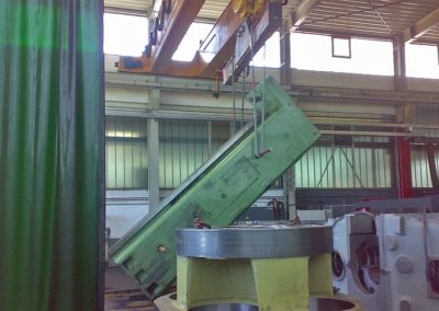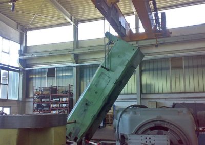 Inhalt dieses Projektes war zum Einen die Verlagerung des Bohrwerkes innerhalb der Räumlichkeiten des Kunden in Zusammenarbeit mit HWO Transporttechnik OHG, zum Anderen wurde durch den Austausch des alten Gleitbelages am Turm mit SKC 62 die Winkeligkeit der Achsen wieder hergestellt.
